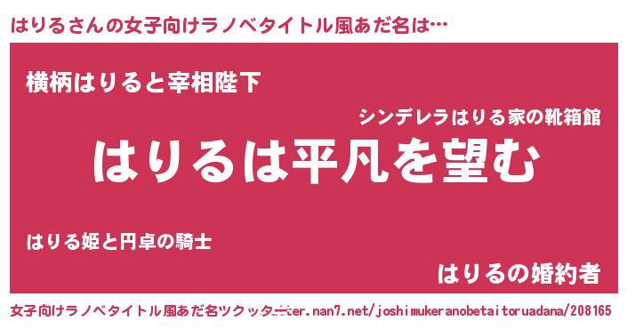 | ヒーロー風カッコイイあだ名 | 『黄金騎士ハリ』『ウルトラはりるマン』 |