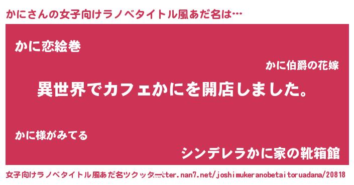 | ヘコむあだ名 | 『かに(笑)』『豆乳』『かにお』 |