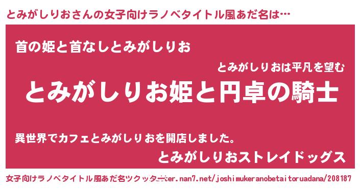 | 男性向けラノベタイトル風あだ名 | 『とみがしりおの憂鬱』 |