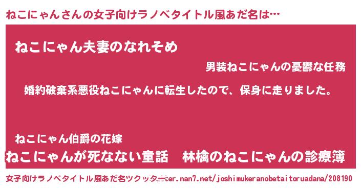 | 男性向けラノベタイトル風あだ名 | 『ネコニャンスレイヤー』 |
