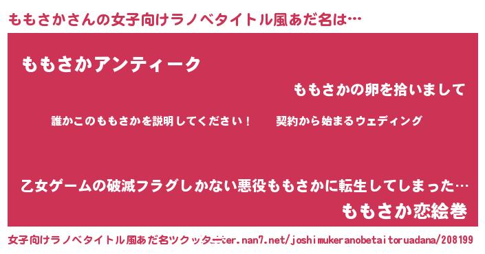 | 男性向けラノベタイトル風あだ名 | 『モモサカアートオンライン』 |