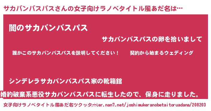 | 男性向けラノベタイトル風あだ名 | 『サカバンバスパスアートオンライン』 |