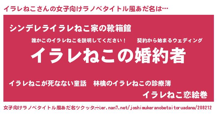 | ファンタジー風あだ名 | 『エターナルイラレネコー』『イラフェル』 |