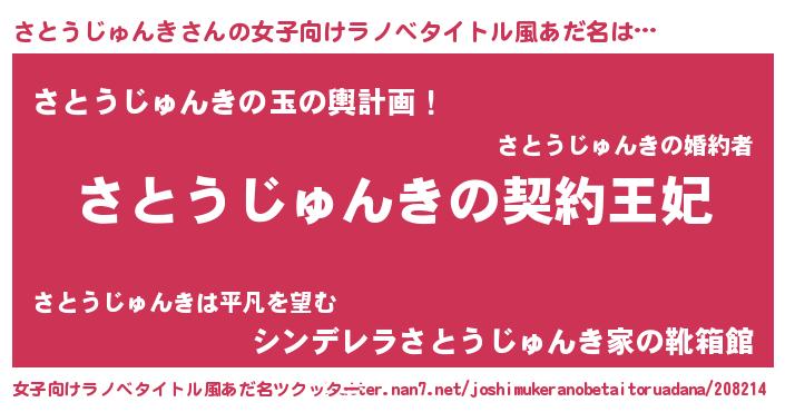 | 男性向けラノベタイトル風あだ名 | 『誰もが恐れるあのさとうじゅんきが、ぼくの専属メイドになるようです。』 |