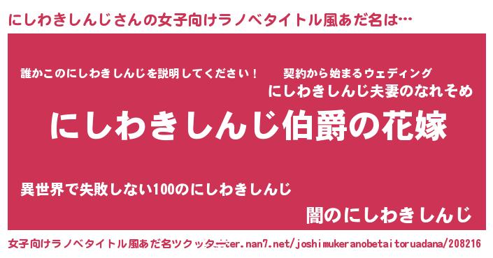 | 男性向けラノベタイトル風あだ名 | 『やはりにしわきしんじの青春ラブコメはまちがっている 』 |
