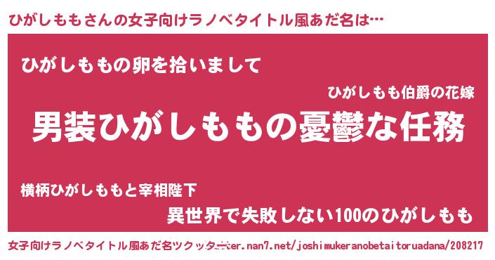 | 男性向けラノベタイトル風あだ名 | 『うちのひがしももが世界を掌握している!』 |