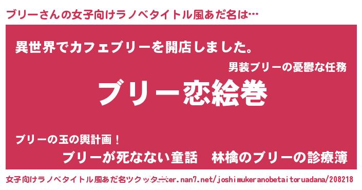 | 男性向けラノベタイトル風あだ名 | 『ノーゲーム・ノーブリー』 |
