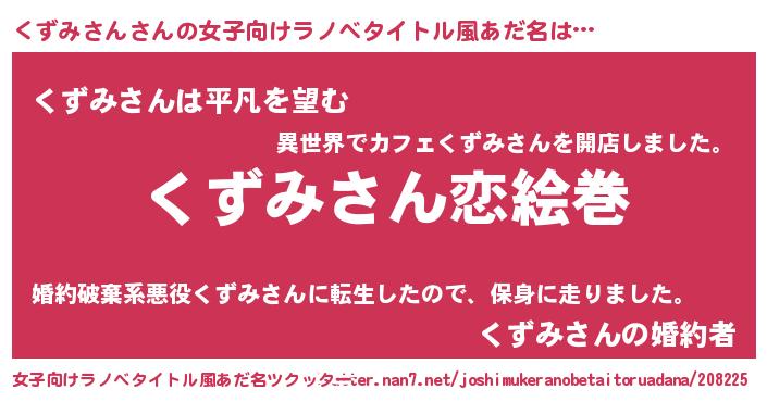 | 男性向けラノベタイトル風あだ名 | 『ノーゲーム・ノークズミサン』 |