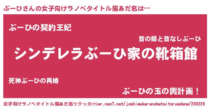 | 男性向けラノベタイトル風あだ名 | 『冴えないぶーひの育てかた』 |