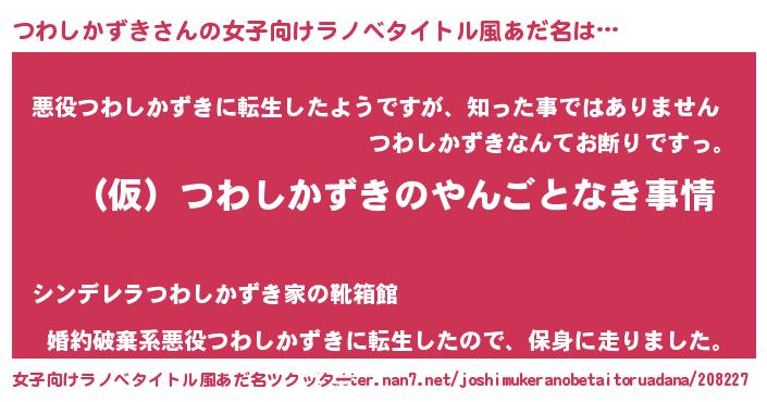 | 男性向けラノベタイトル風あだ名 | 『つわしかずきの憂鬱』 |