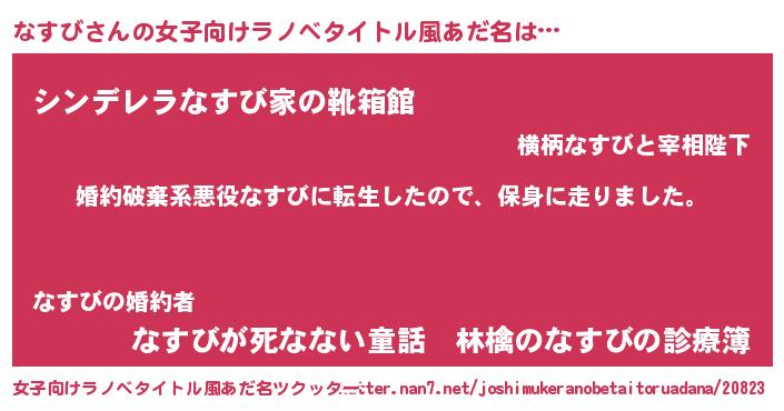 | 男性向けラノベタイトル風あだ名 | 『ナスビスレイヤー』『緋弾のナスビ』 |