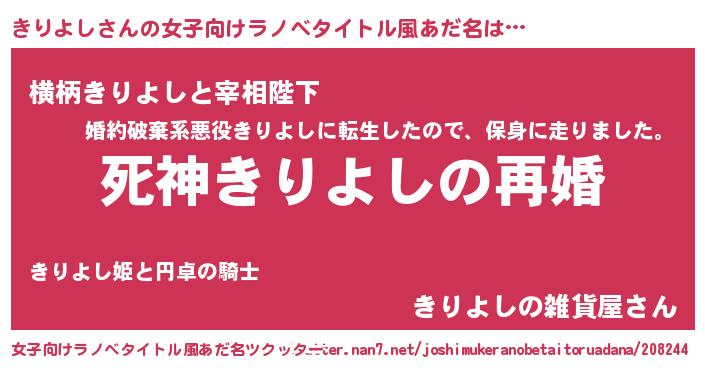 | 男性向けラノベタイトル風あだ名 | 『ノーゲーム・ノーキリヨシ』 |