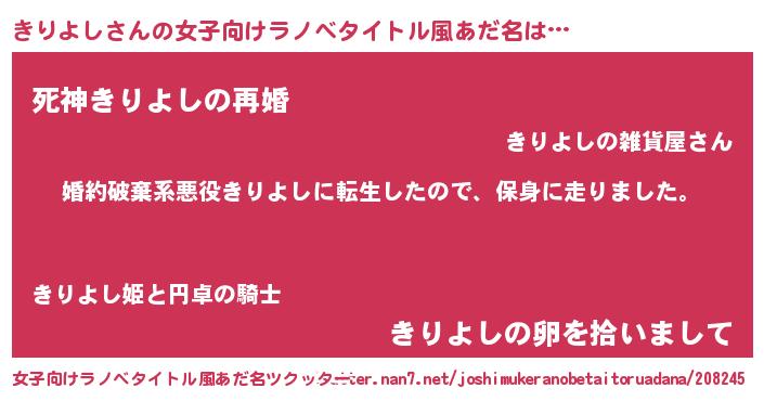 | 男性向けラノベタイトル風あだ名 | 『キリヨシスレイヤー』 |