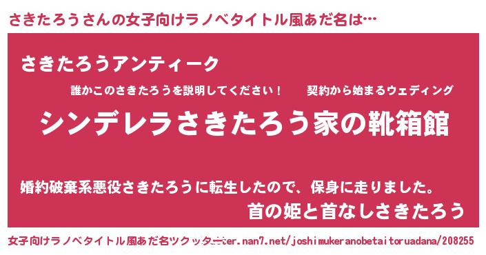 | 男性向けラノベタイトル風あだ名 | 『冴えないさきたろうの育てかた』 |