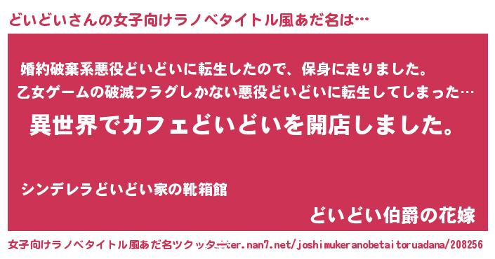 | 男性向けラノベタイトル風あだ名 | 『誰もが恐れるあのどいどいが、ぼくの専属メイドになるようです。』 |