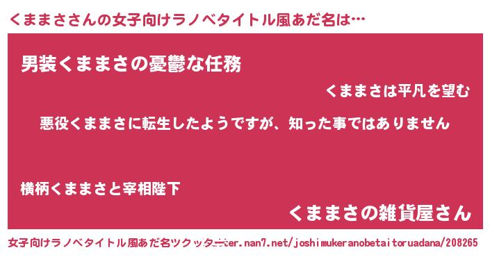 | 胡散臭い通販商品みたいなあだ名 | 『あなたにだけ特別に提供する世界で10本だけ現存している希少なブランデー…その名も「くままさ」』 |