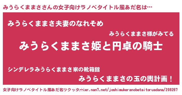 | 男性向けラノベタイトル風あだ名 | 『ミウラクママサアートオンライン』 |