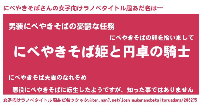 | 男性向けラノベタイトル風あだ名 | 『ニベヤキソバアートオンライン』 |