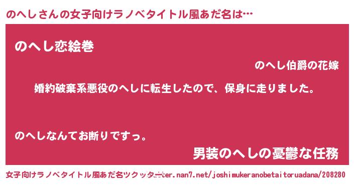| 男性向けラノベタイトル風あだ名 | 『ノヘシスレイヤー』 |