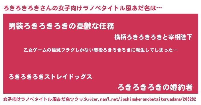| 男性向けラノベタイトル風あだ名 | 『この素晴らしい世界にろきろきろきを!』 |