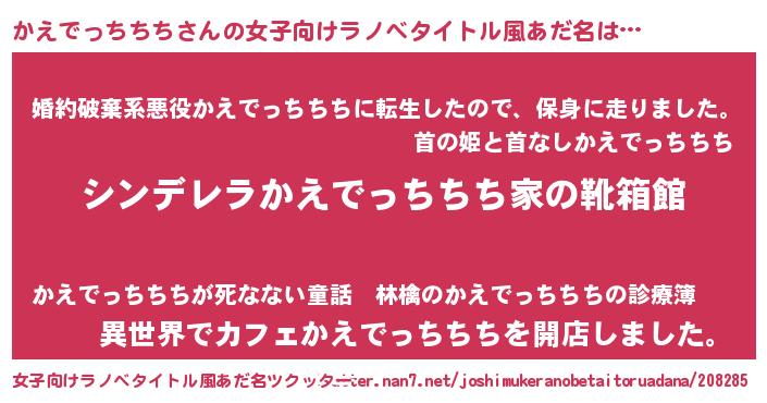 | 胡散臭い通販商品みたいなあだ名 | 『絶対に幸福をもたらす水素水…その名も「かえでっちちち」』 |