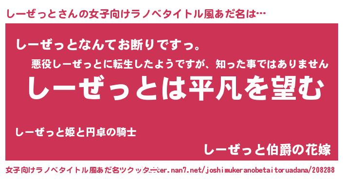 | 胡散臭い通販商品みたいなあだ名 | 『信頼と実績のペンダント…その名も「しーぜっと」』 |