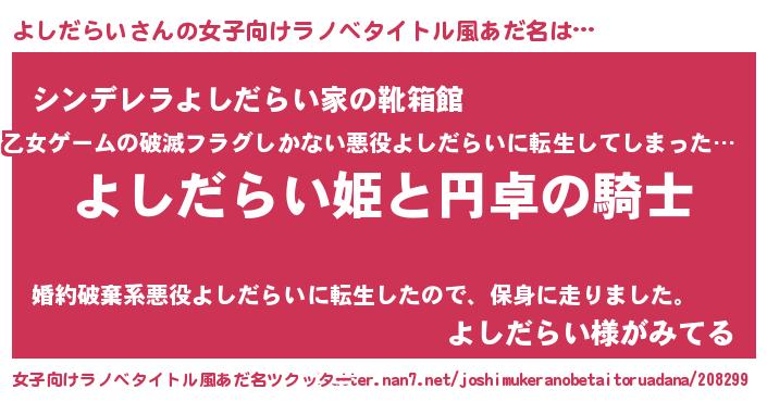 | 男性向けラノベタイトル風あだ名 | 『ヨシダライアートオンライン』 |