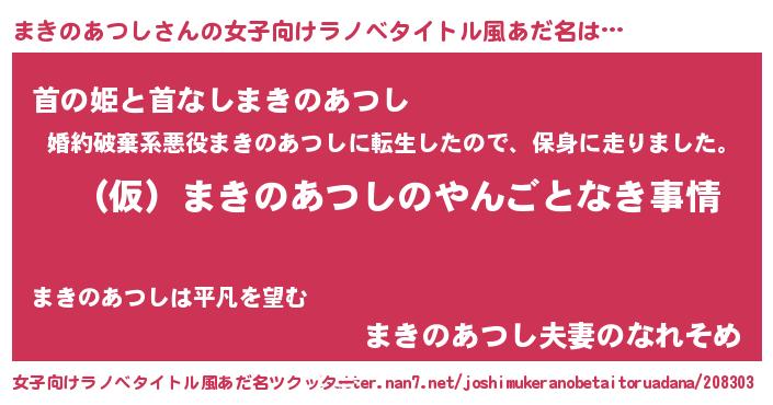 | 男性向けラノベタイトル風あだ名 | 『まきのあつしの憂鬱』 |