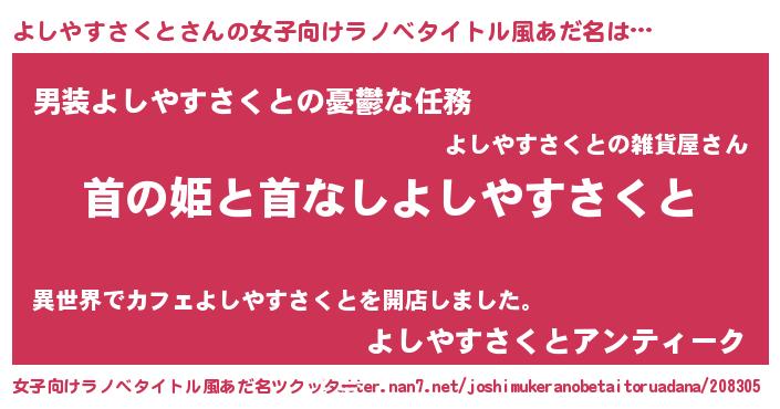| 意味不明あだ名 | 『自称よしやすさくと』 |