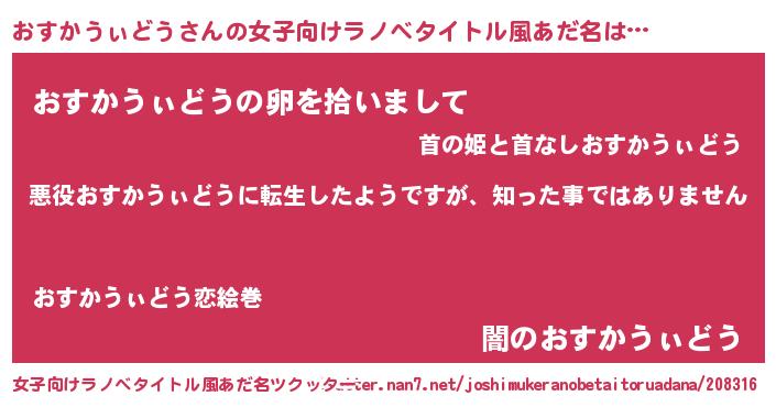| 男性向けラノベタイトル風あだ名 | 『この素晴らしい世界におすかうぃどうを!』 |