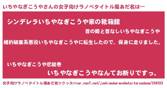 | 胡散臭い通販商品みたいなあだ名 | 『ガンによく効く高麗人参…その名も「いちやなぎこうや」』 |