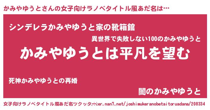 | 男性向けラノベタイトル風あだ名 | 『ダンジョンにかみやゆうとを求めるのは間違っているだろうか』 |