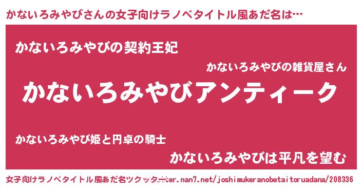 | ヘコむあだ名 | 『かないろみやび(小並感)』『かなを』 |