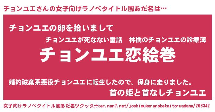 | 男性向けラノベタイトル風あだ名 | 『ノーゲーム・ノーチョンユエ』 |
