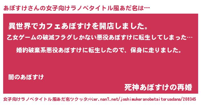 | 男性向けラノベタイトル風あだ名 | 『アボスケスレイヤー』 |