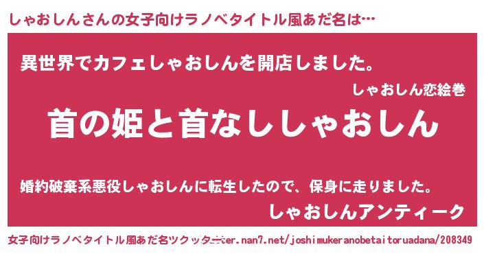 | 胡散臭い通販商品みたいなあだ名 | 『絶対に幸福をもたらす水素水…その名も「しゃおしん」』 |