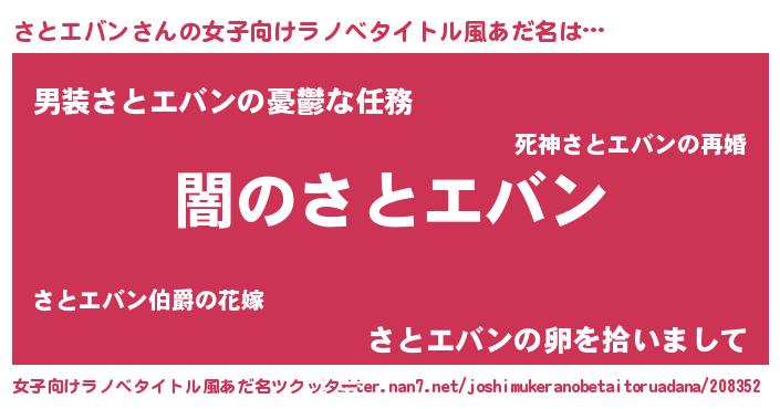 | 男性向けラノベタイトル風あだ名 | 『Re:さとエバンから始める異世界生活』 |
