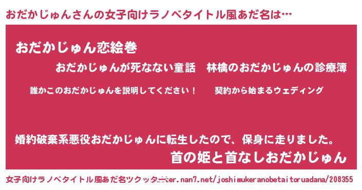 | 男性向けラノベタイトル風あだ名 | 『オダカジュンアートオンライン』 |