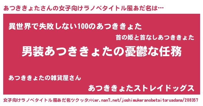 | 意味不明あだ名 | 『永久保存あつききょた』 |