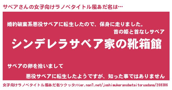 | 男性向けラノベタイトル風あだ名 | 『緋弾のサベア』『サベアスレイヤー』 |