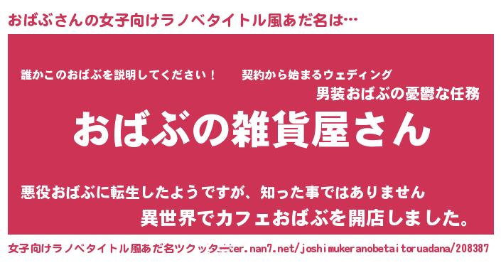 | 男性向けラノベタイトル風あだ名 | 『やはりおばぶの青春ラブコメはまちがっている 』 |