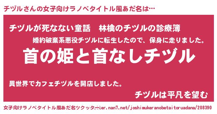 | ヒーロー風カッコイイあだ名 | 『仮面チヅダー』『黄金騎士チヅ』 |