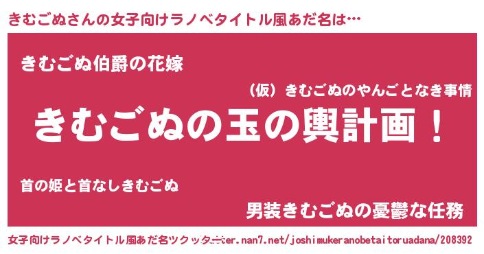 | 男性向けラノベタイトル風あだ名 | 『きむごぬ~年齢イコール彼女いない歴の魔法使い~』 |