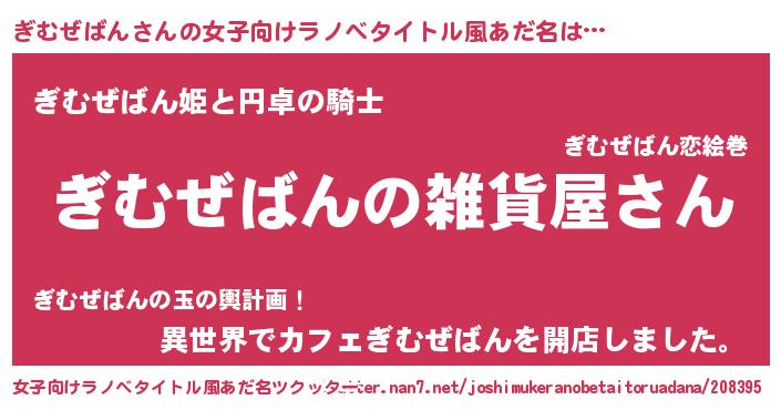 | ファンタジー風あだ名 | 『エターナルギムゼバンー』『ギムフェル』 |