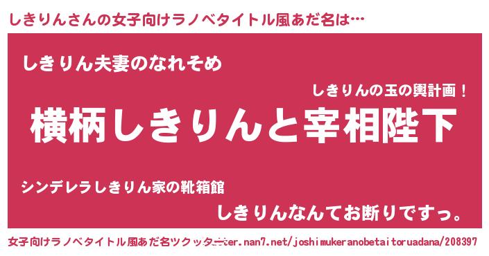 | 男性向けラノベタイトル風あだ名 | 『しきりんに滅ぼされるだけの簡単なお仕事です』 |