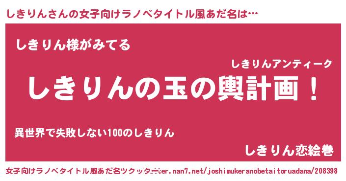 | ヒーロー風カッコイイあだ名 | 『幻影騎士シキ』『天空の使者しきりん』 |