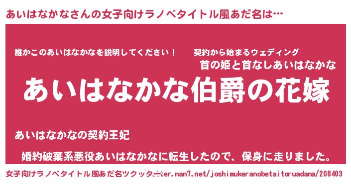 | 男性向けラノベタイトル風あだ名 | 『やはりあいはなかなの青春ラブコメはまちがっている 』 |