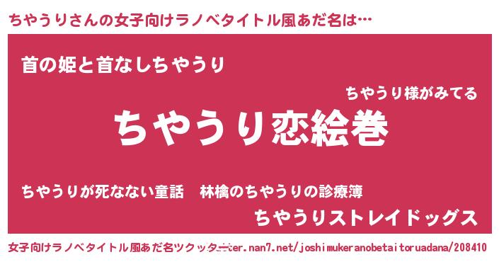 | ヒーロー風カッコイイあだ名 | 『友情の使者ちやうり』『魔戒騎士チヤ』 |