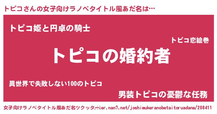 | 胡散臭い通販商品みたいなあだ名 | 『運命の人と巡り会える高級そうな壺…その名も「トピコ」』 |