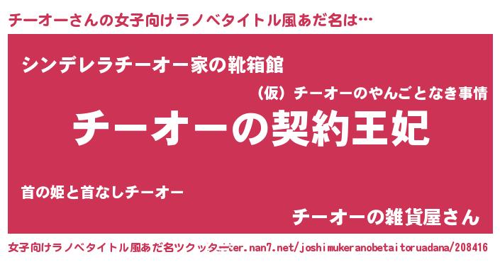 | 胡散臭い通販商品みたいなあだ名 | 『来世でも幸せになれる健康食品…その名も「チーオー」』 |
